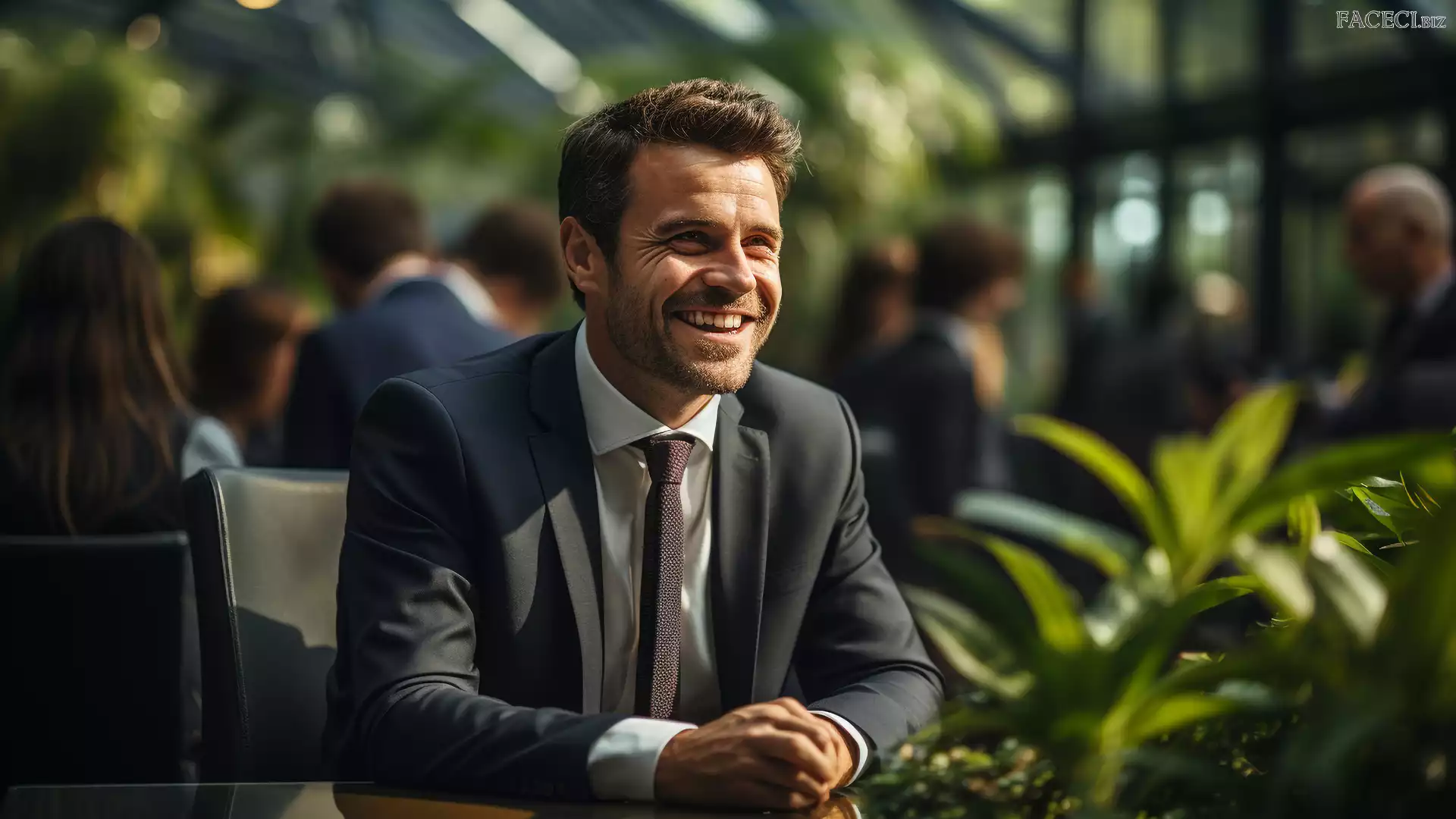 Uśmiechnięty, Mężczyzna, Stolik, Garnitur - faceci.biz